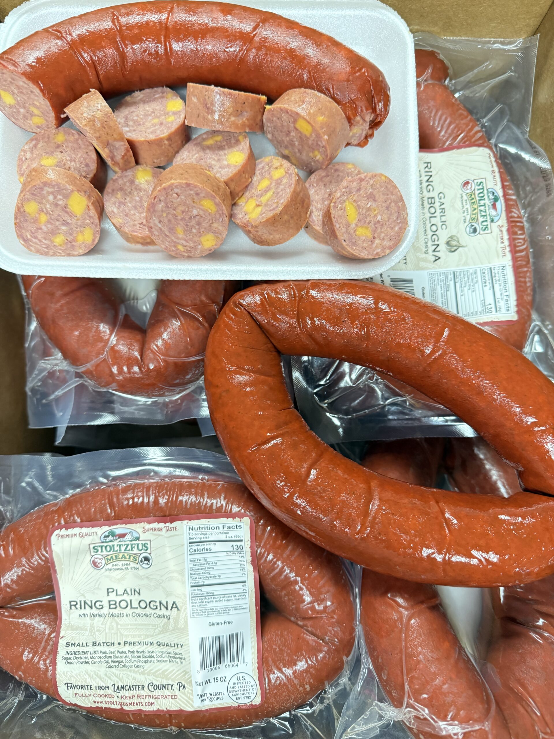 15oz Mini Ring Bologna$8.50 Flavors Choose an optionPlainGarlicCheeseClear 15oz Mini Ring Bologna quantity Add to cart SKU: N/A Categories: Beef, Bologna Additional information Additional information Weight N/A Flavors Plain, Garlic, Cheese Related products Kunzler Super Jumbo Hot Dogs $27.00 Add to cart Twin Pines Honey Sweet Bologna Midget $13.00 Add to cart Kielbasa Sticks w/ Cheese (28 pc) $30.00 Add to cart Sweet Sticks $15.00 – $75.00Price range: $15.00 through $75.00 Select options This product has multiple variants. The options may be chosen on the product page